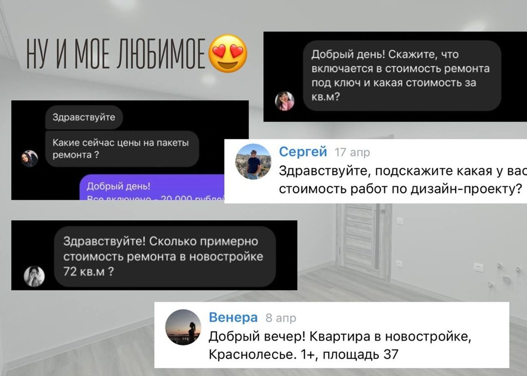 -сняли классные ролики (тут очень повлияла вовлеченность руководителя, который активно снимался и харизматично рассказывал о нюансах ремонта, о готовых объектах и брал отзывы заказчиков