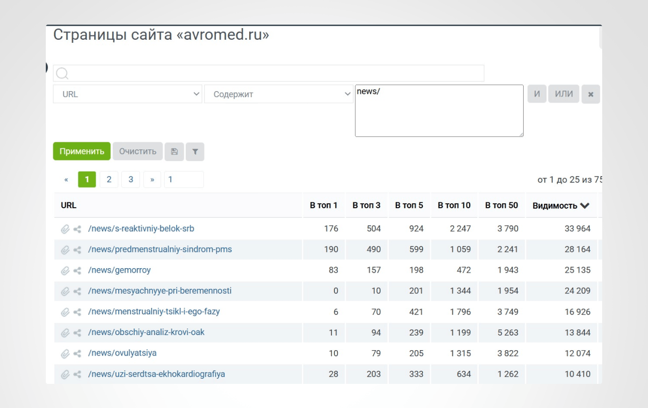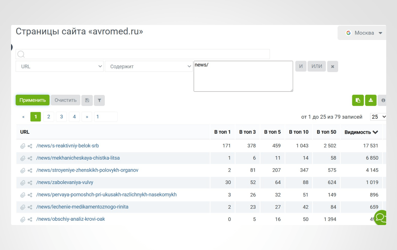 - новые страницы быстро начали попадать в ТОП-5 по целевым запросам, что принесло дополнительный стабильный трафик.