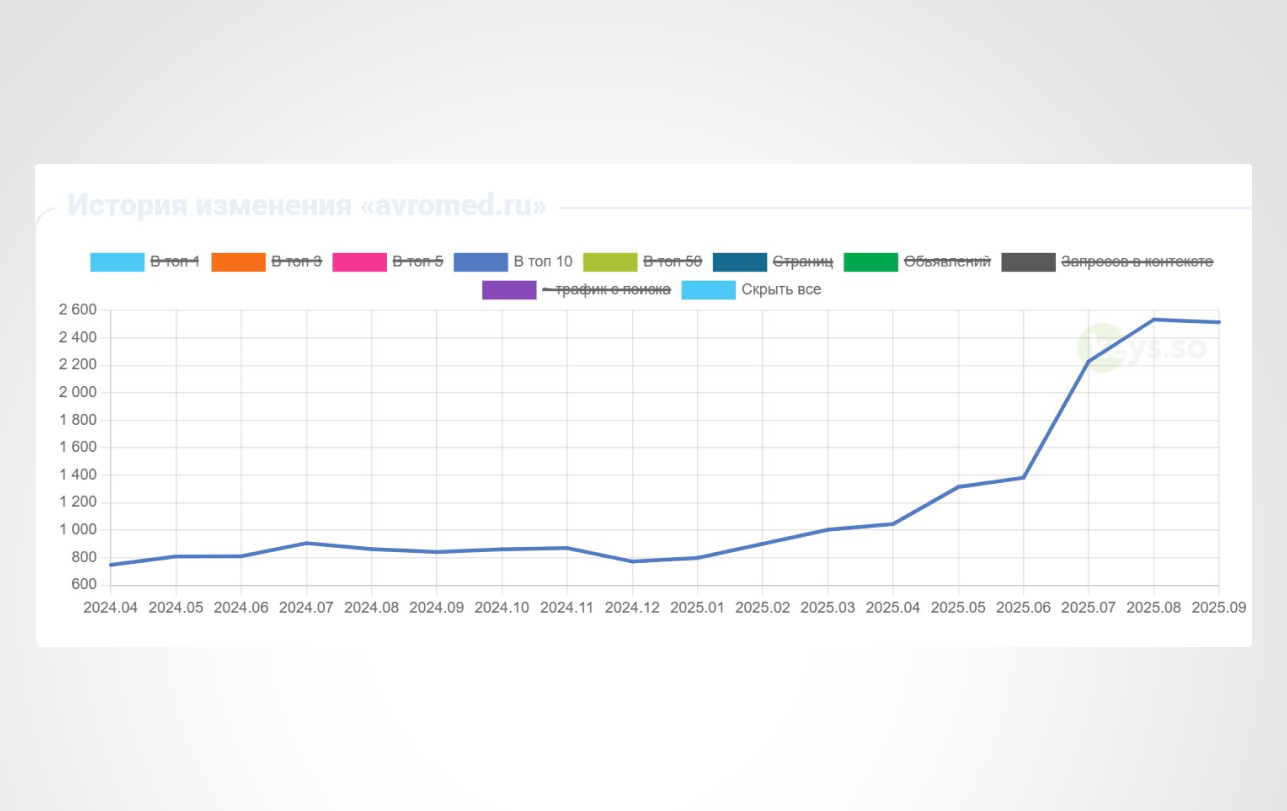 Благодаря комплексному SEO-продвижению сайт медицинской клиники показал кратный рост всего за полгода работы.