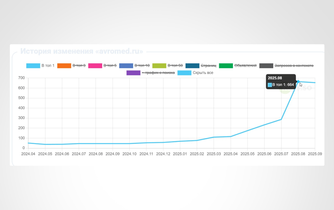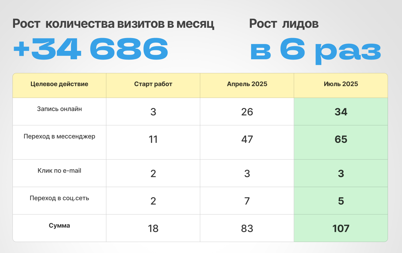 сайт клиники стал заметнее в интернете, и к нам обратилось больше новых пациентов.
