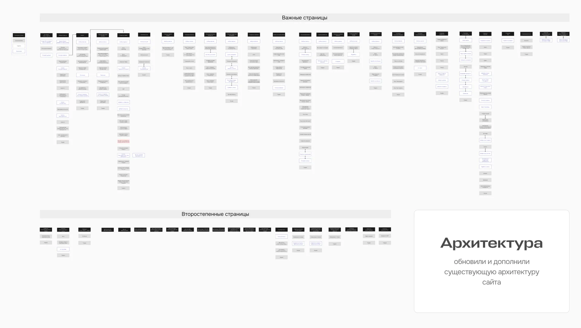 Сделали новую карту сайта, которую разделили на ключевые и второстепенные страницы, сделав для каждой из них последовательность смысловых блоков.