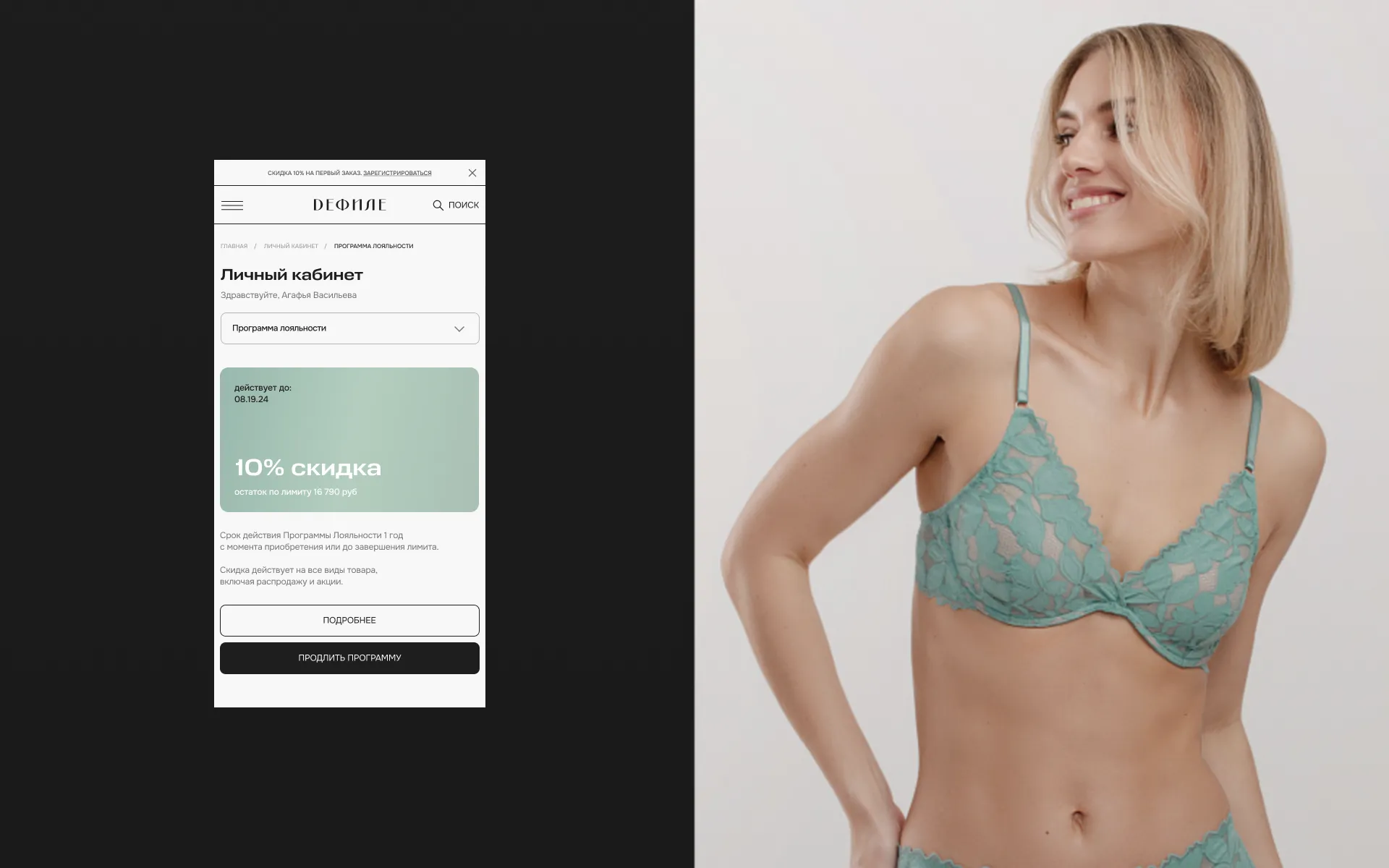 Дефиле — российский бренд, который производит и продает женское нижнее бельё более чем в 30 городах России. У бренда большая база лояльных покупателей — женщины 20-45 лет.