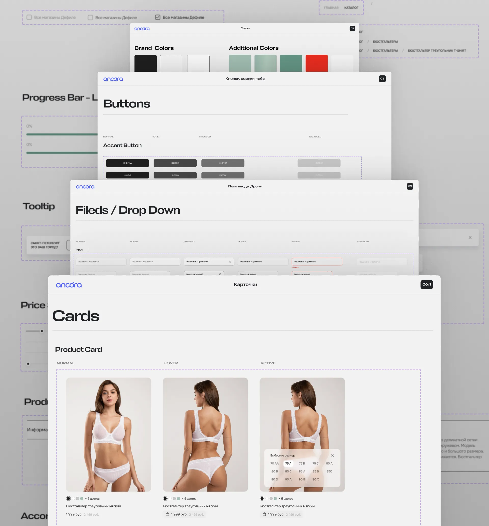 Cделали подробный UI-кит, который поможет в будущем быстро масштабировать сайт команде Дефиле. Собрали все компоненты и описание их работы, чтобы было легко их внедрять на стадии разработки. На старом сайте не было единой системы для поддержания целостности дизайна.