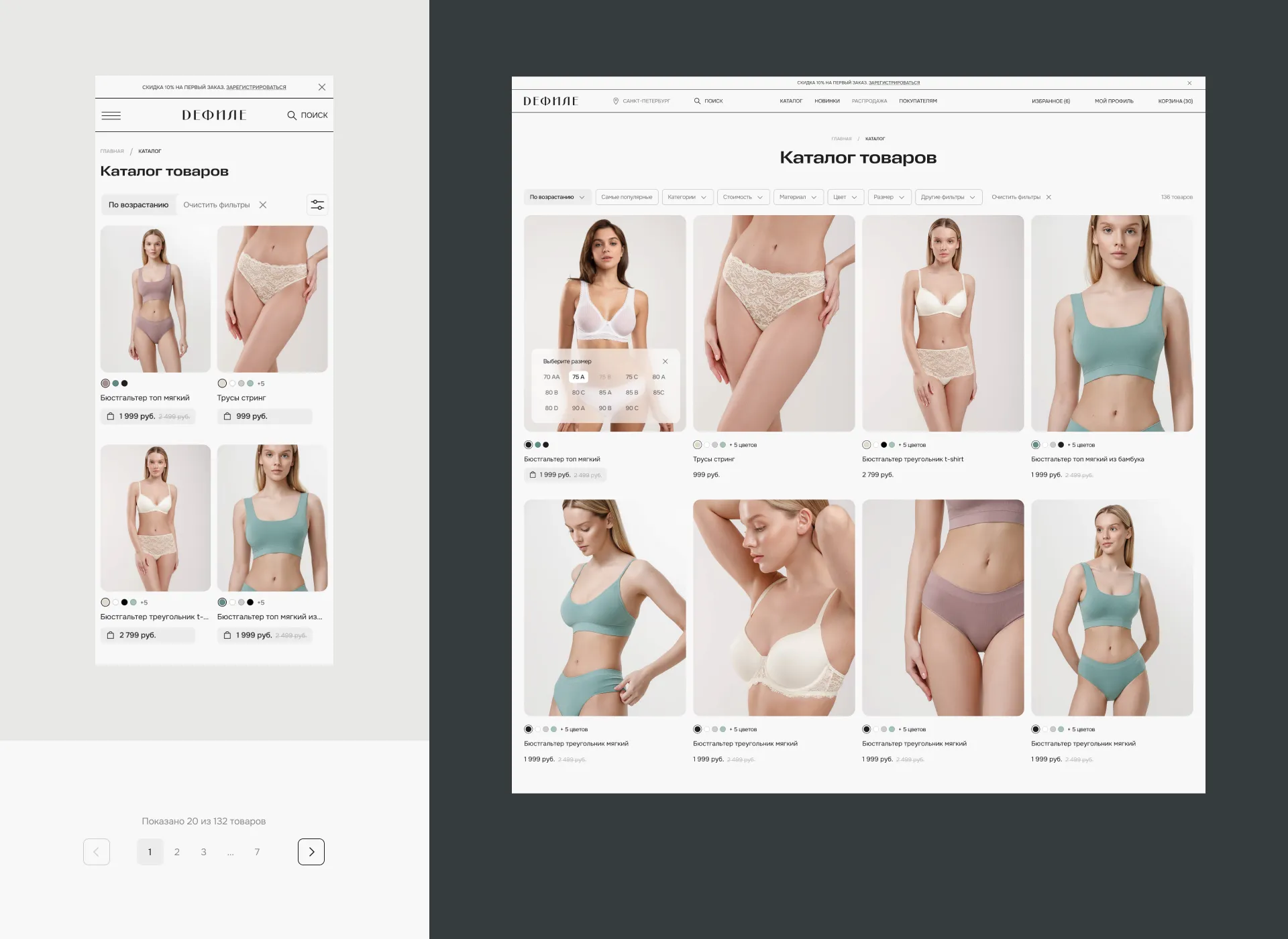 Мы внимательно и детально разбирали больше 20 сайтов ритейлеров белья, онлайн-магазинов и известных маркетплейсов. Обращали внимание на доступные и удобные механики для пользователей.