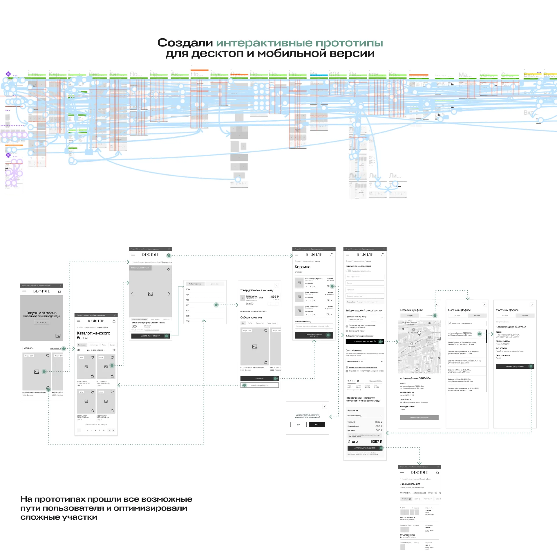 На прототипах тестировали возможные пути пользователя и оптимизировали сложные участки. Такой подход помог существенно сэкономить ресурсы на процессе разработки и во время создания адаптивного дизайна.