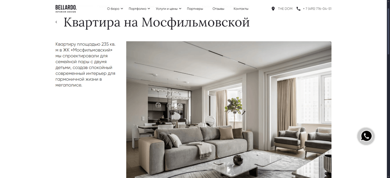 Благодаря понятной верстке есть возможность поэтапно проследить как происходит разработка интерьера, увидеть все преимущества, а также посмотреть галерею с готовыми работами
