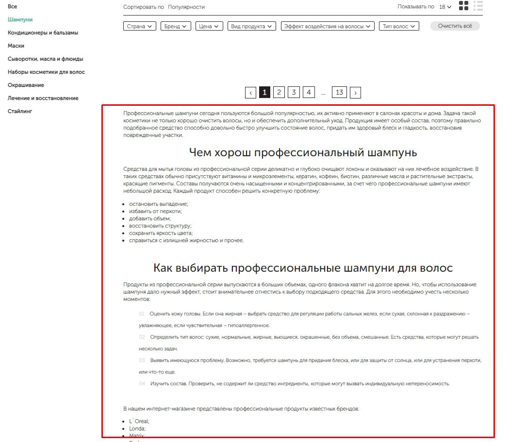 Оптимизация брендовых страниц: Проведена оптимизация брендовых страниц сайта, включающая в себя оптимизацию мета-тегов и добавление релевантных SEO-текстов, что позволило улучшить видимость сайта по брендовым запросам и привлечь трафик от пользователей, ищущих конкретные бренды.