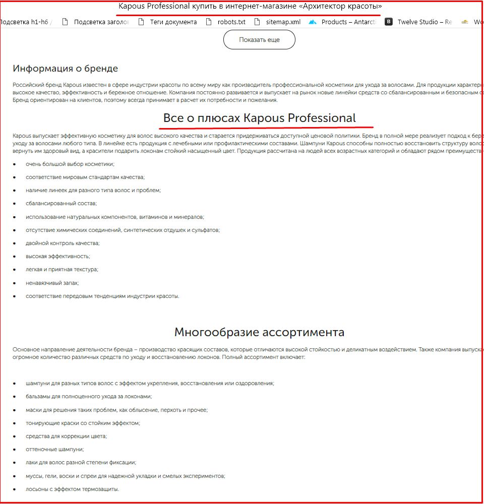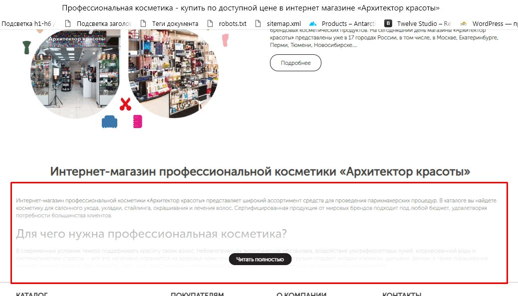На этапе анализа был проведен комплексный аудит сайта https://akrasoty.ru/, включающий в себя: