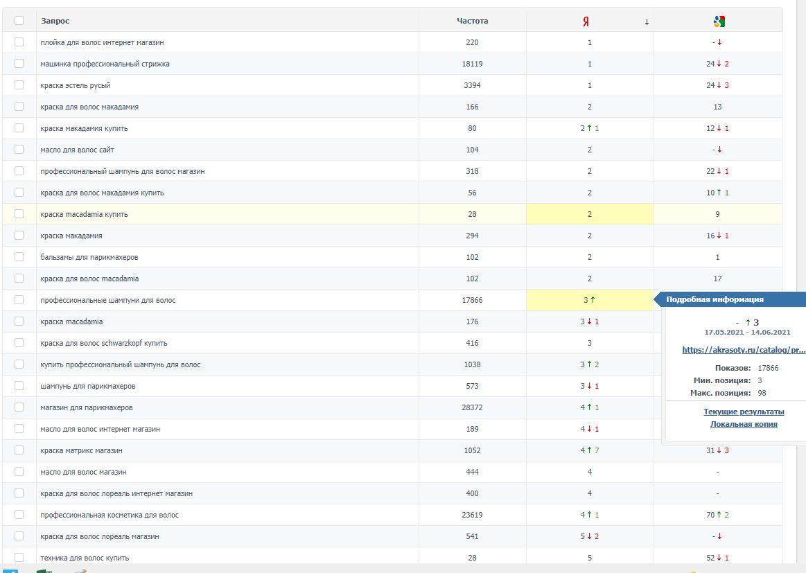 ООО “Архитектор красоты” представляет собой сеть магазинов, специализирующихся на реализации профессиональных инструментов и косметических средств для парикмахеров и стилистов. На момент начала работ (август 2020 года) сайт https://akrasoty.ru/ демонстрировал низкие показатели органического трафика и слабую видимость в поисковых системах Яндекс и Google.