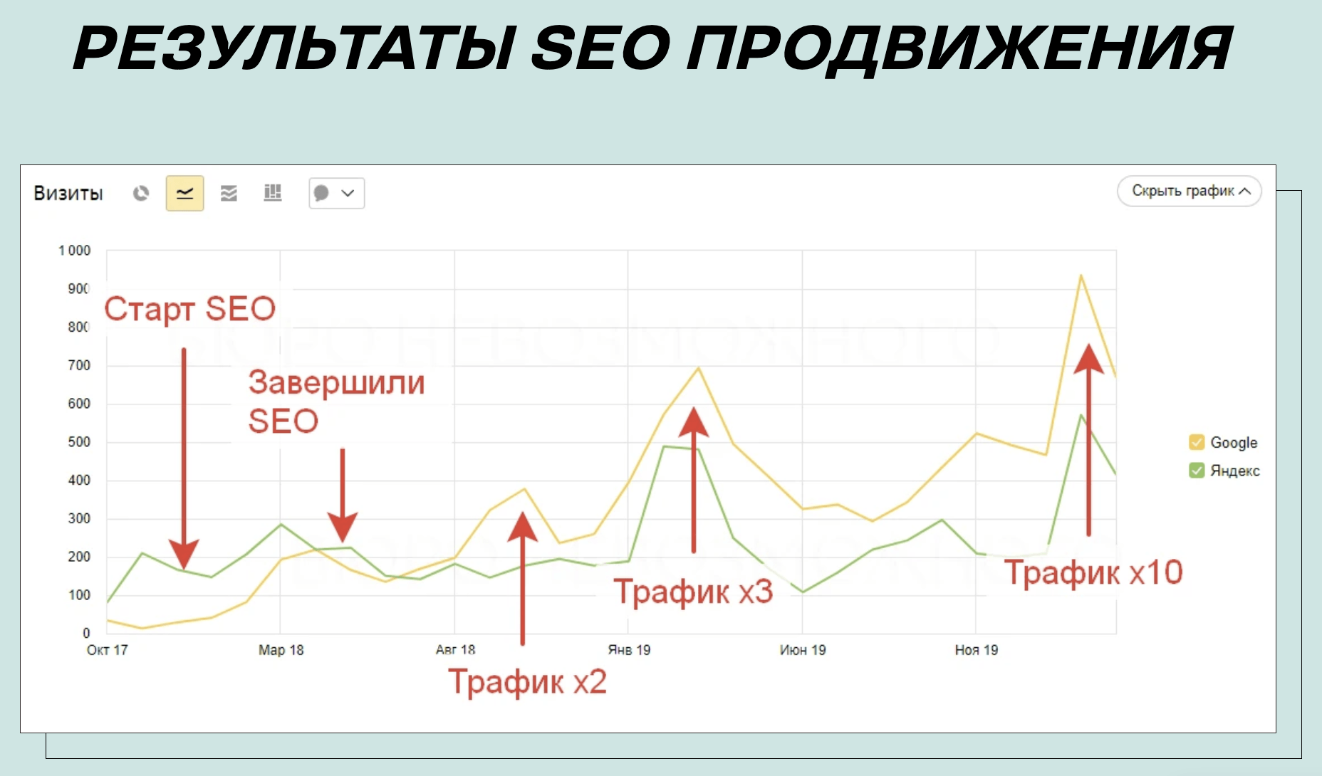 SEO продвижение - это отличный инструмент для игры в долгую. Вы не сразу получаете результат в виде посещаемости и клиентов, но зато через некоторое время результаты продвижения можно увидеть такой, что в сравнении с другими методами рекламы SEO покажется какой-то магией, учитывая первоначальные вложения.