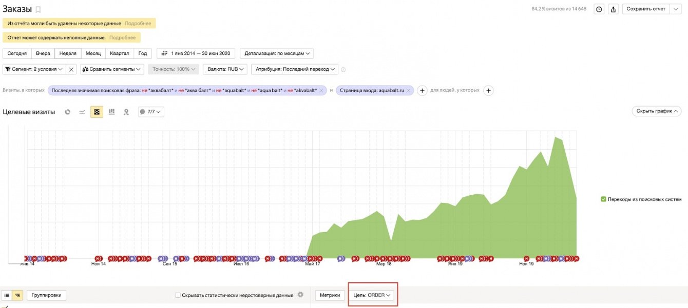 Посетители из поисковых систем. График исключает брендовые запросы.