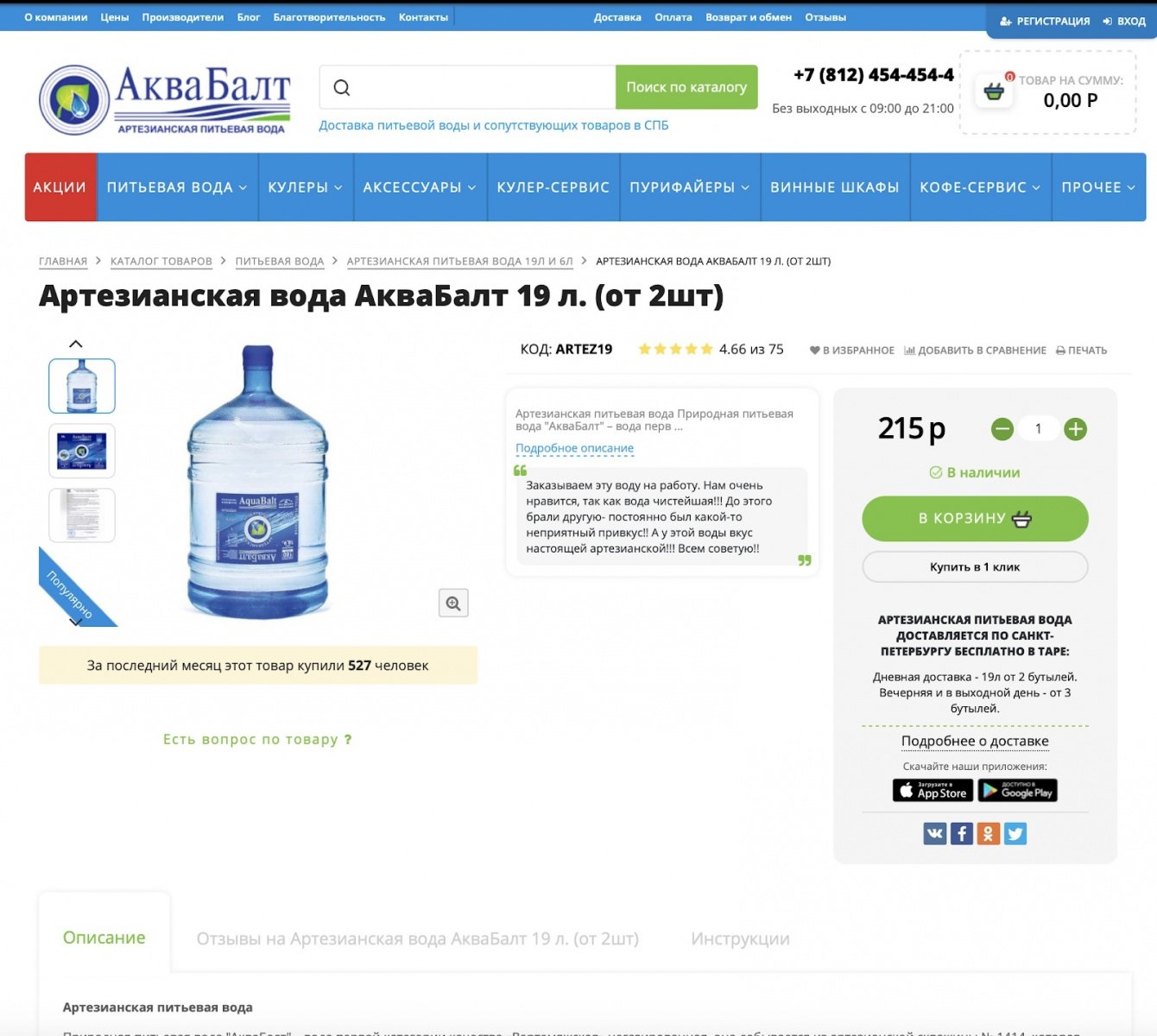 ◉ Сайт компании “Аквабалт” выглядел устаревшим и сильно отставал от конкурентов как визуально, так и функционально: При аудите сайта выявилась фатальная ошибка: товар не добавлялся в корзину.