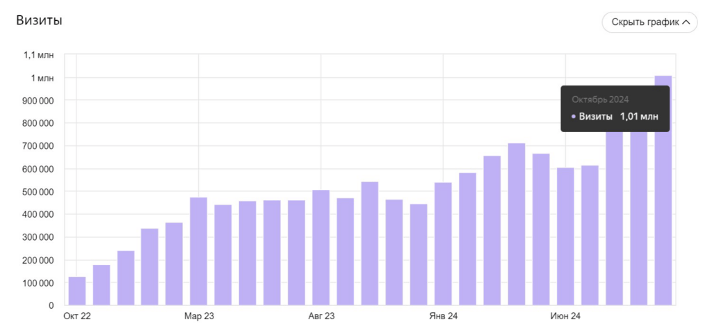 Благодаря детальной постраничной оптимизации и актуализации контента под обновленную семантику мы вернули трафик из Google и преодолели отметку в 1 000 000 визитов в месяц. Главный урок для нас – важно быть готовыми к изменениям.