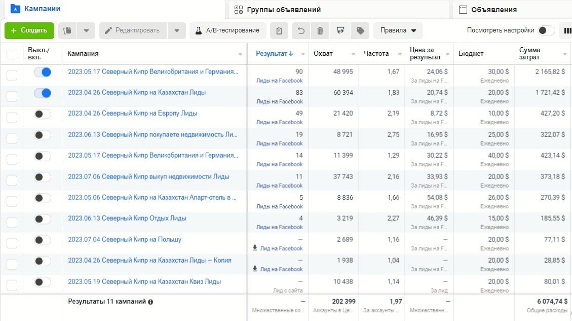 Потрачено 6804 $ получено 275 заявок по цене 27 $.