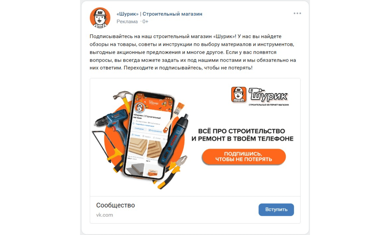 Для продвижения выбрали таргетированную рекламу во ВКонтакте с фокусом на набор аудитории в новое сообщество. Так как стартовали с нуля, на первом этапе важно было не просто запустить рекламу, а понять, какие сегменты аудитории и какие рекламные сообщения лучше всего работают именно для строительной ниши.