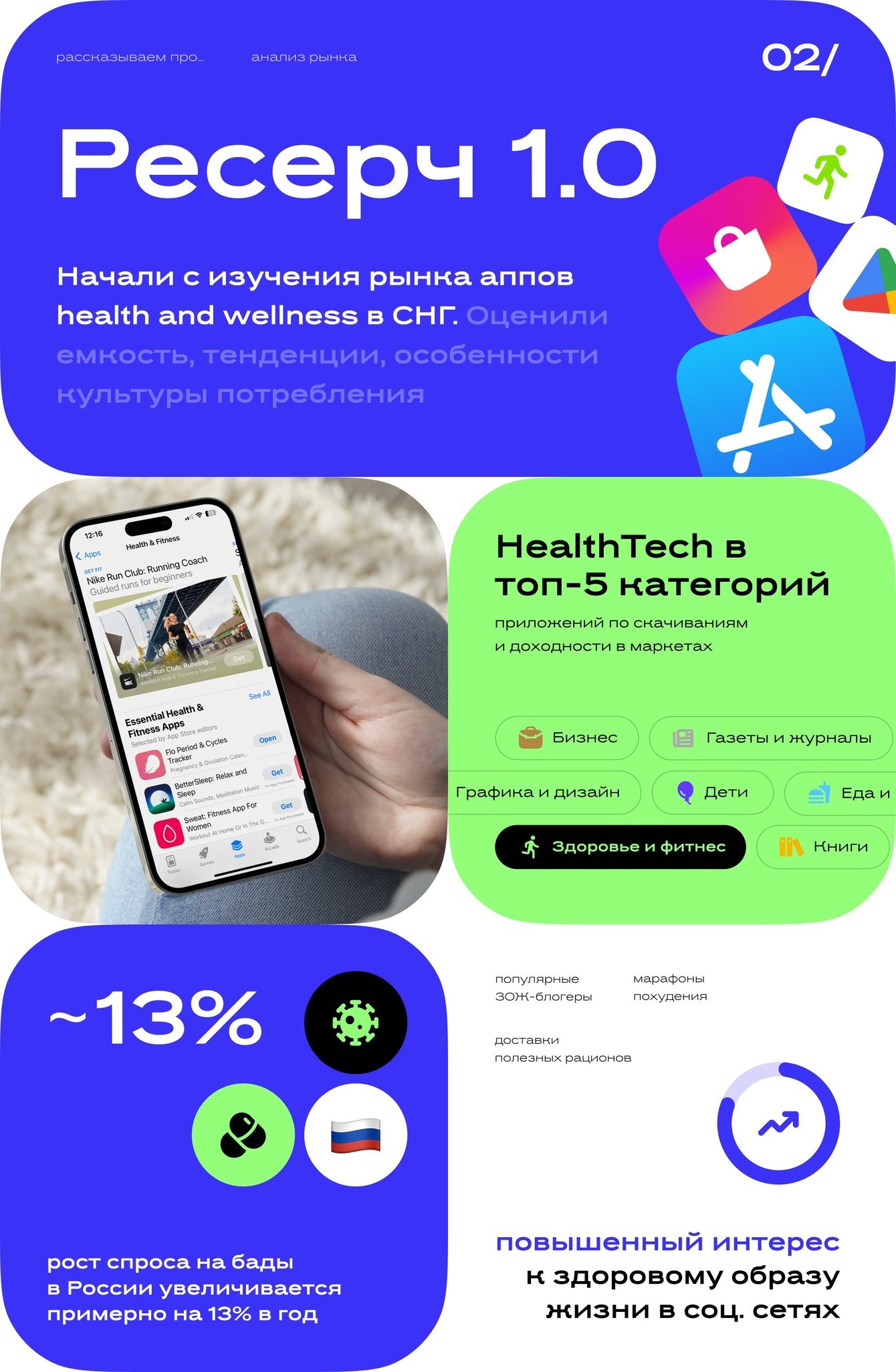 Начали с изучения рынка приложений health and wellness в СНГ. Оценили емкость, тенденции, особенности культуры потребления и выяснили, что: