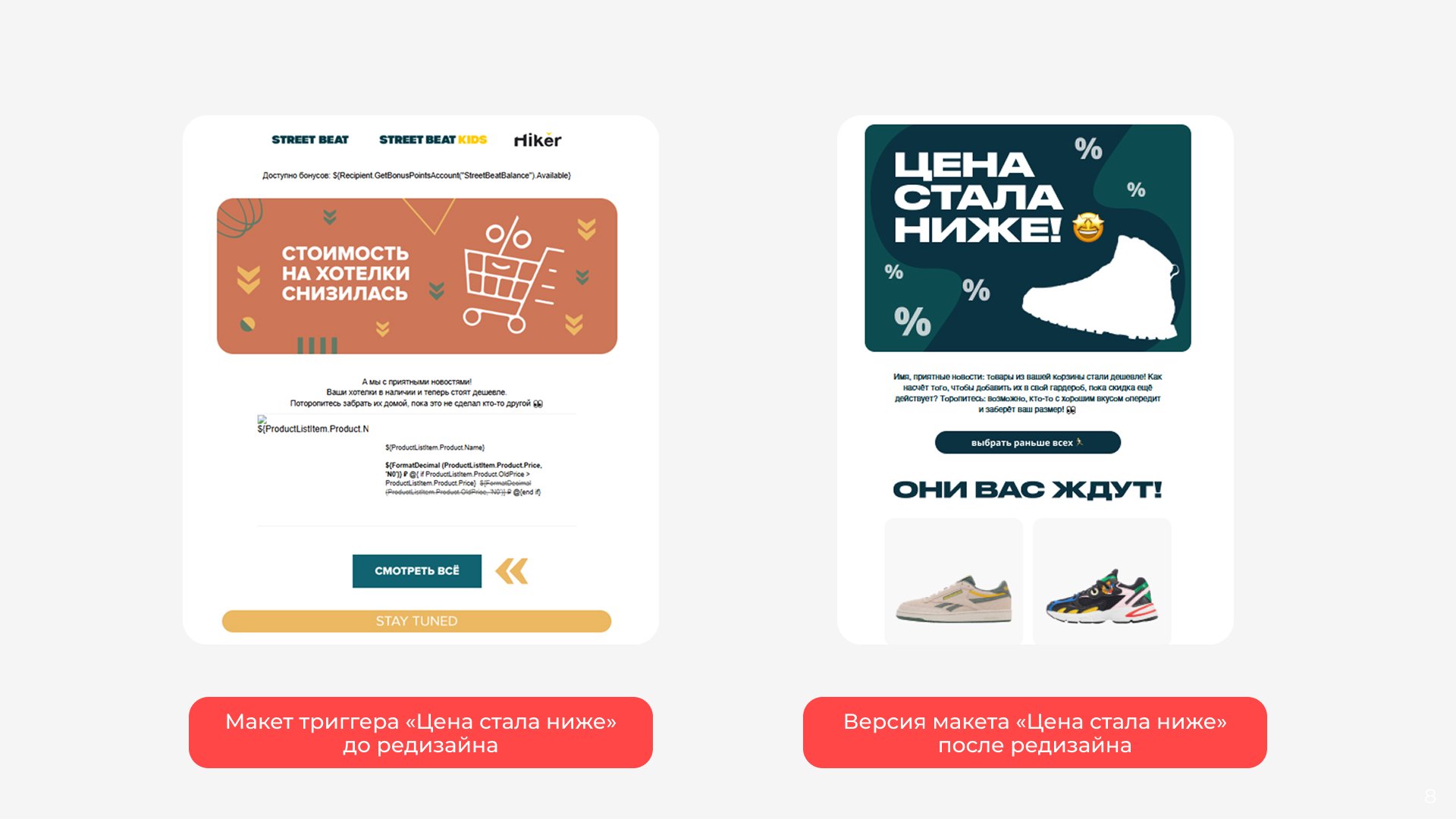 Когда клиент часто заходит на сайт и не решается с выбором, ему приходят триггерные письма. Однако если рассылка говорит «Вы забыли товар в корзине» одним и тем же голосом полгода — шансов мало. Чтобы триггеры не приедались, периодически их следует обновлять. Для этого и нужен редизайн рассылок.