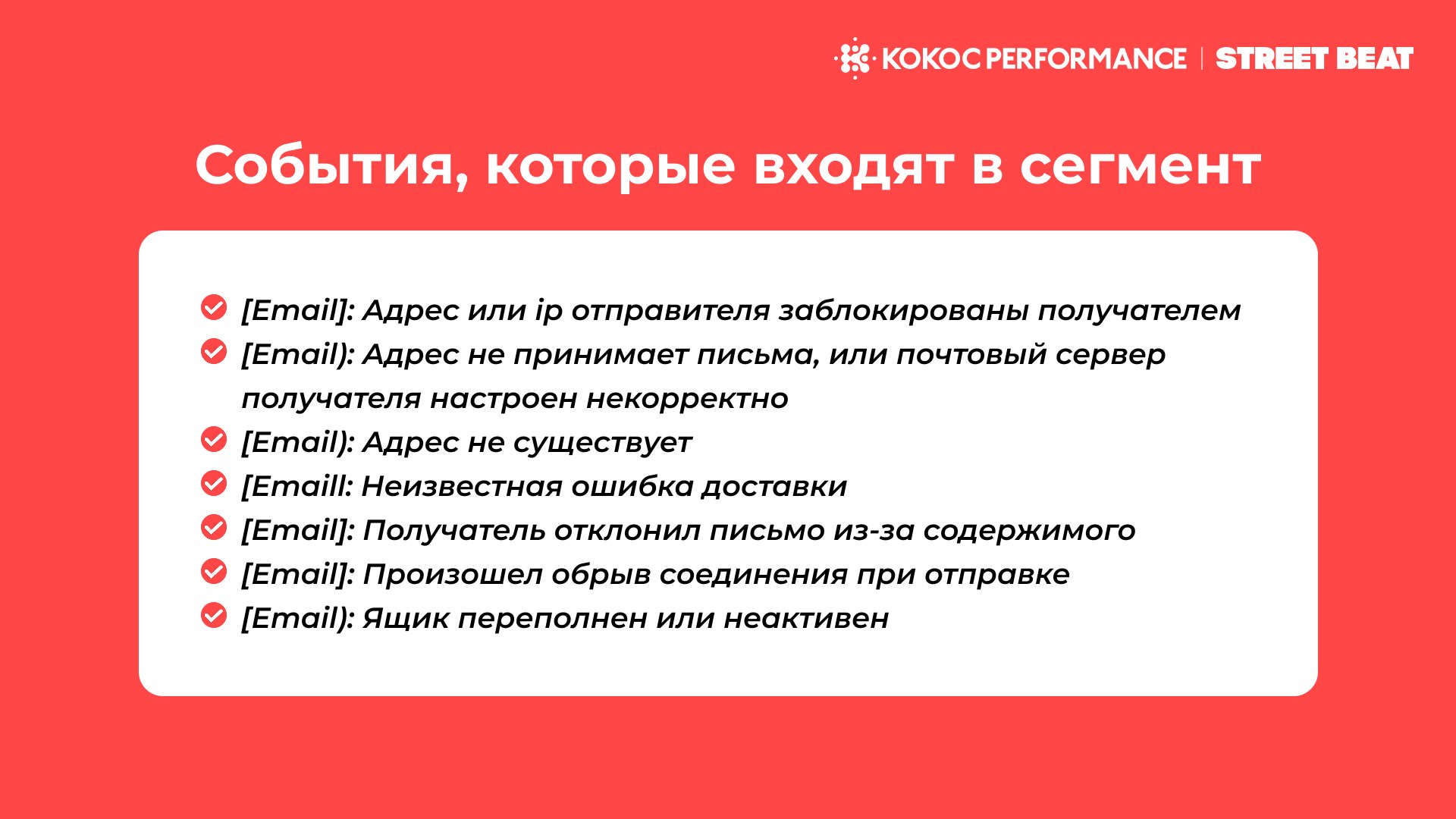 Доставляемость имейл на проекте была 96,95%. Для улучшения показателя внедрили фильтры на «мягкие возвраты». Собрали сегмент из пользователей, у которых были ошибки доставки писем, статус «переполнена почта» или «адрес не существует». В фильтре исключили этот сегмент. В результате доставляемость писем на проекте выросла до 99,77%.