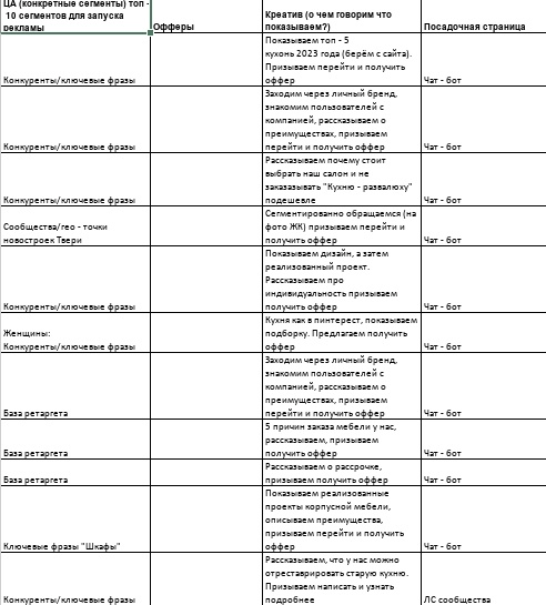 Также на основе анализа конкурентов и тех промопостов, которые генерируют трафик мы составили 10 разных гипотез (описание креативов), которые будем тестировать в первую очередь и которое с наибольшей вероятностью позволят привести заявки.