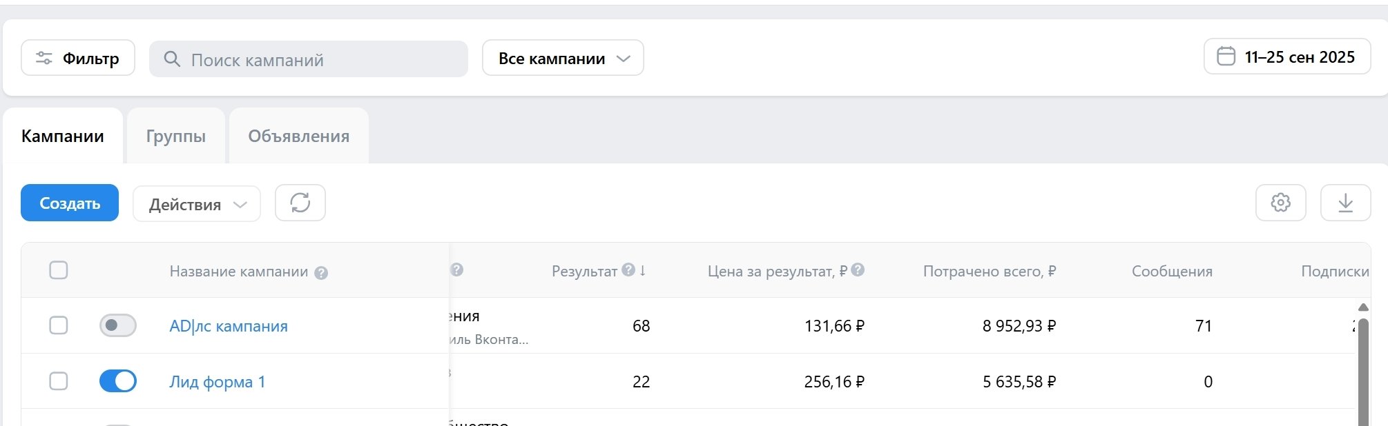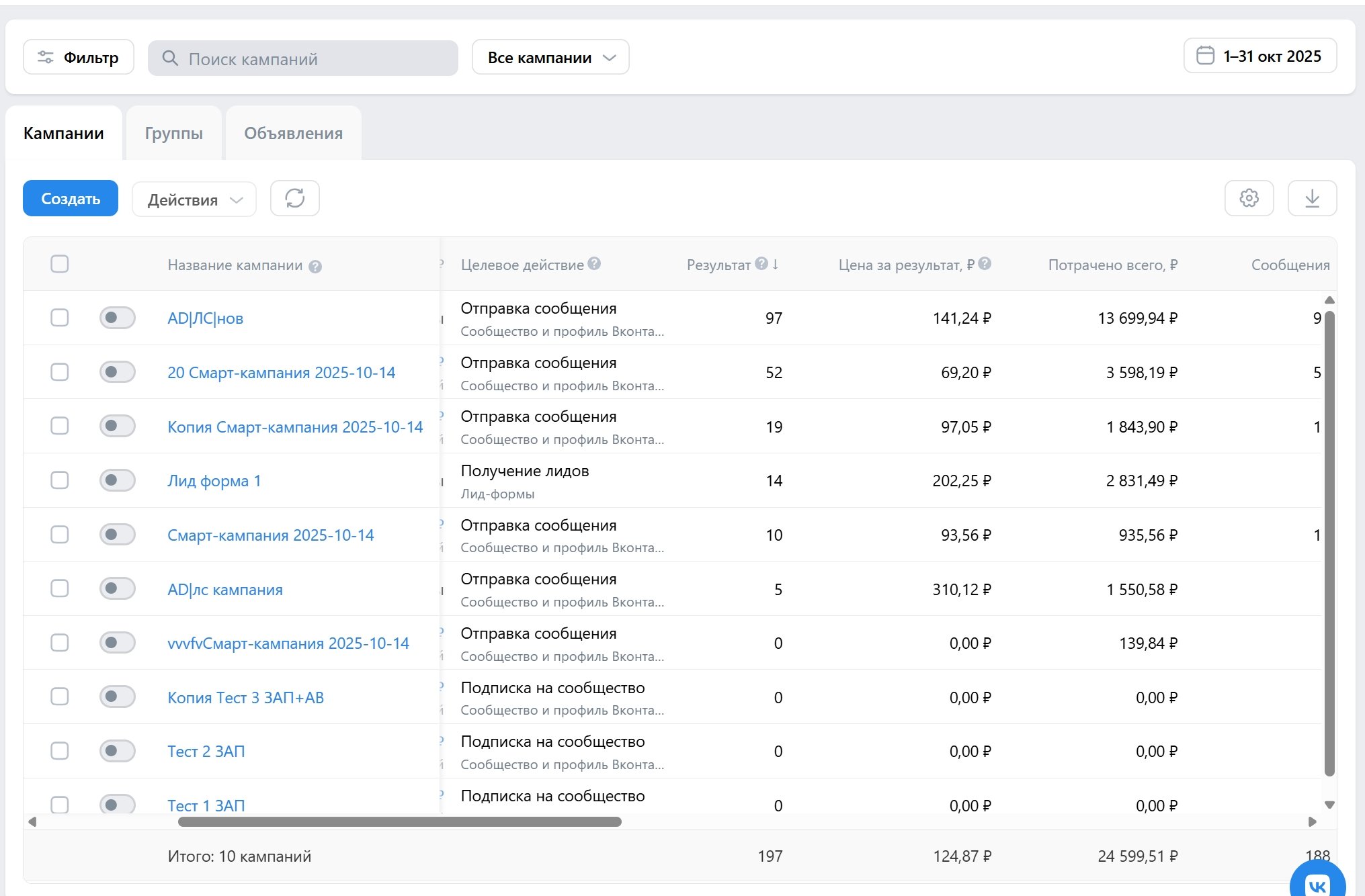 🔥 Лучшая кампания: 97 заявок по 141 ₽
