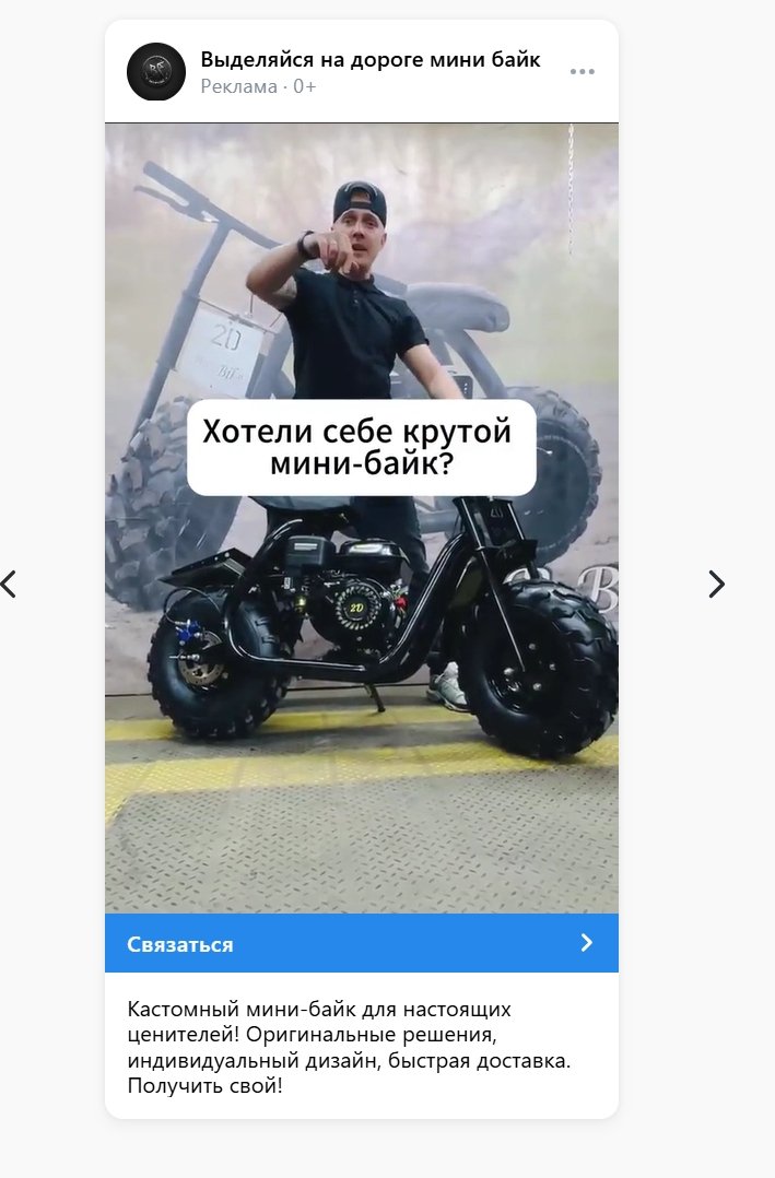 ✅ Креативы с реальными фото мини-байков и фразой “Покори бездорожье”, хотел себе крутой мини байк?