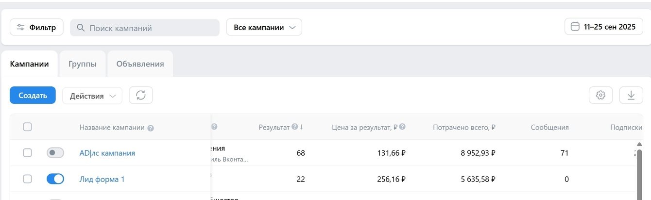 📈 Одна из лид-форм дала 14 лидов по 202 ₽