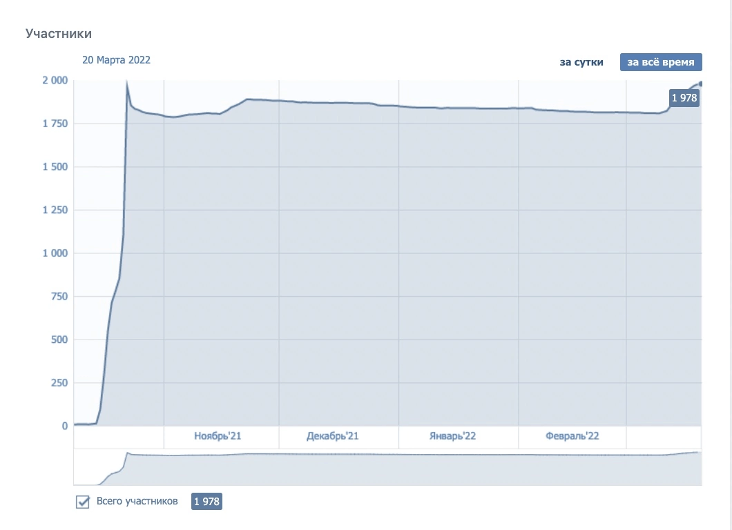 ✔ Подписчики с 0 до 1978 ( на момент записи 21 марта 2022г);