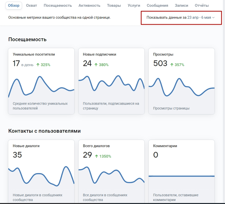 Рекламу ввели в сообщения сообщества. За две недели было получено 30 заявок по средней стоимости 189р, что является отличным результатом!🔥