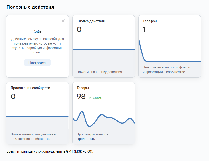 Также, была проведена стандартная подготовка сообщества с точки зрения смыслового / продающего наполнения: добавлен виджет сообщества с приветствием посетителя по имени и с предложением первой услуги на спец.условиях, оффер в описании сообщества, настроена кнопка действия, приветственное сообщение.
