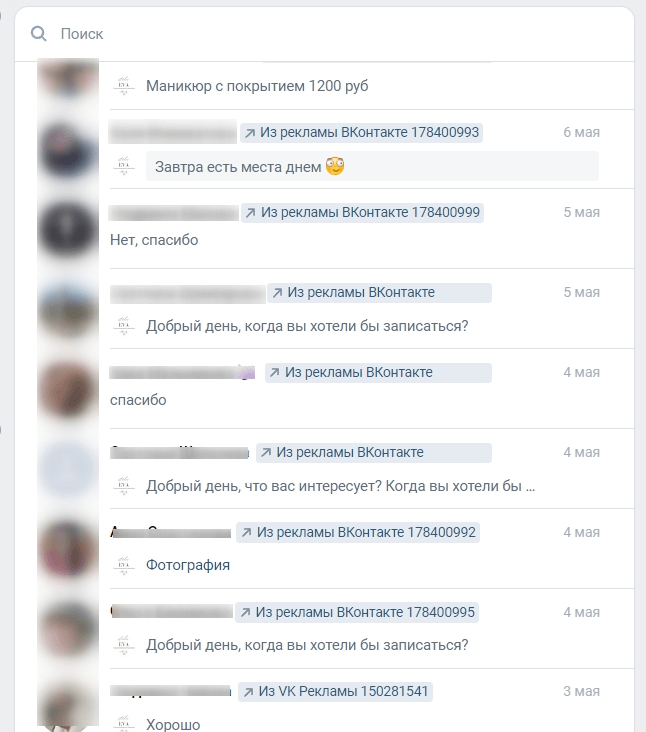 В сообщениях откликались настоящие люди (мы проверяли профили), некоторые записывались, другие уточняли цены, а третьи делали пометки на будущее. Конечно, были и те, кто не отвечал на сообщения, но мы еще будем стараться их оживить через рассылку специальных предложений.