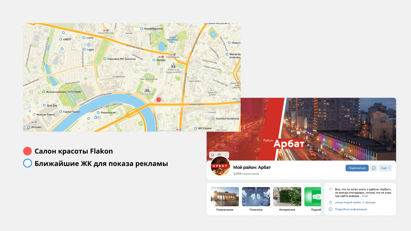 Работая с определенным радиусом показа рекламы, вы можете его разделить на маленькие круги по жк или районом, чтобы понять эффективность конкретной локации. А также ищите группы конкретного района и группы ЖК, которые есть в данных районах.