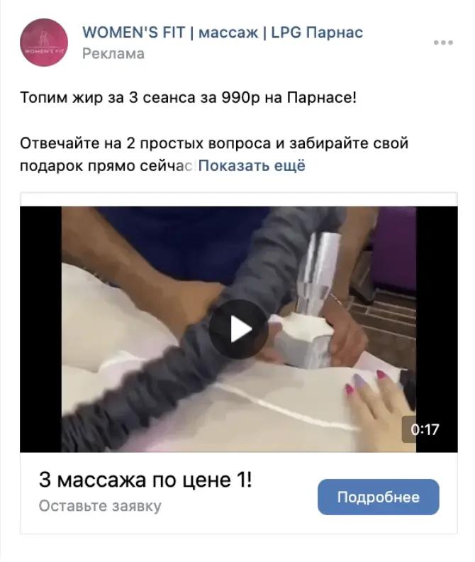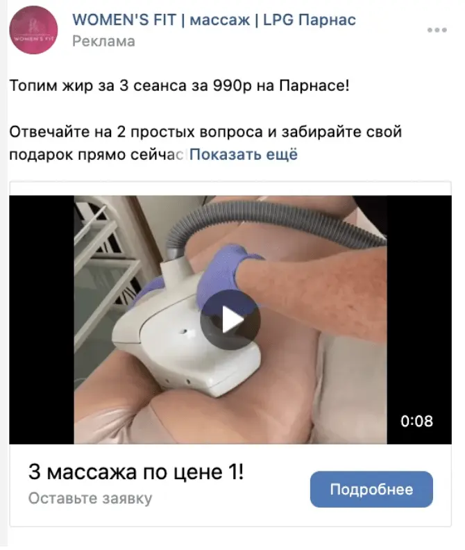Почему разработали такой комплекс? Потому что на основную LPG процедуру мало кто приходит и это не актуально в рекламе ВКонтакте и заявок мало будет - а если процедуру LPG в рекламе приукрасить в качестве дополнительных процедур то это уже необычно и аудитория цепляется на это .