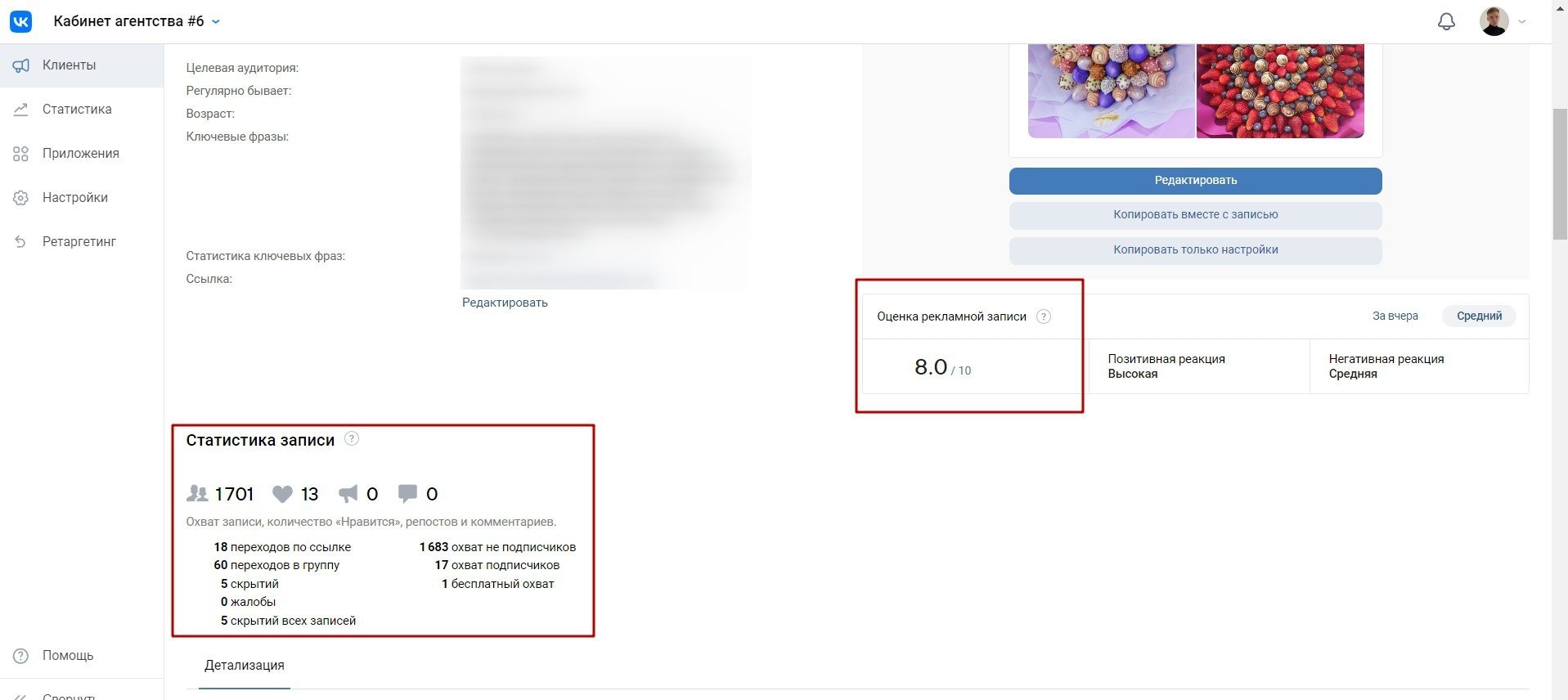 Результаты рекламы ниже с скриншотами