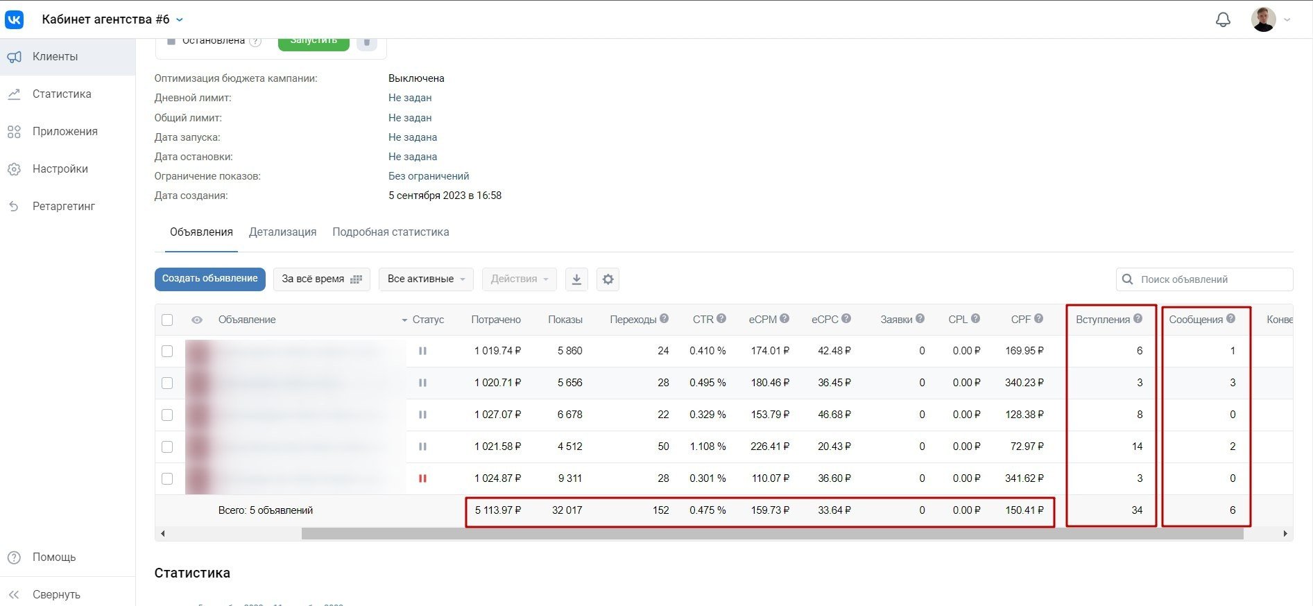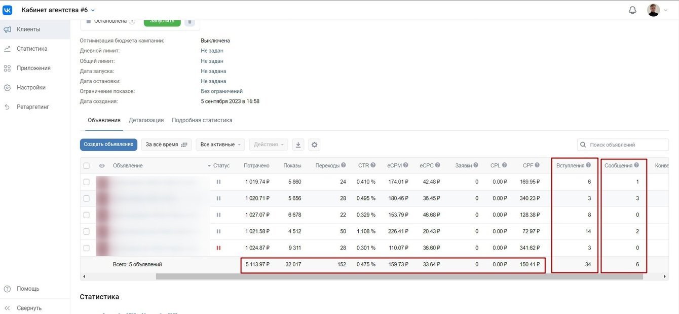 Статистика из рекламного кабинет