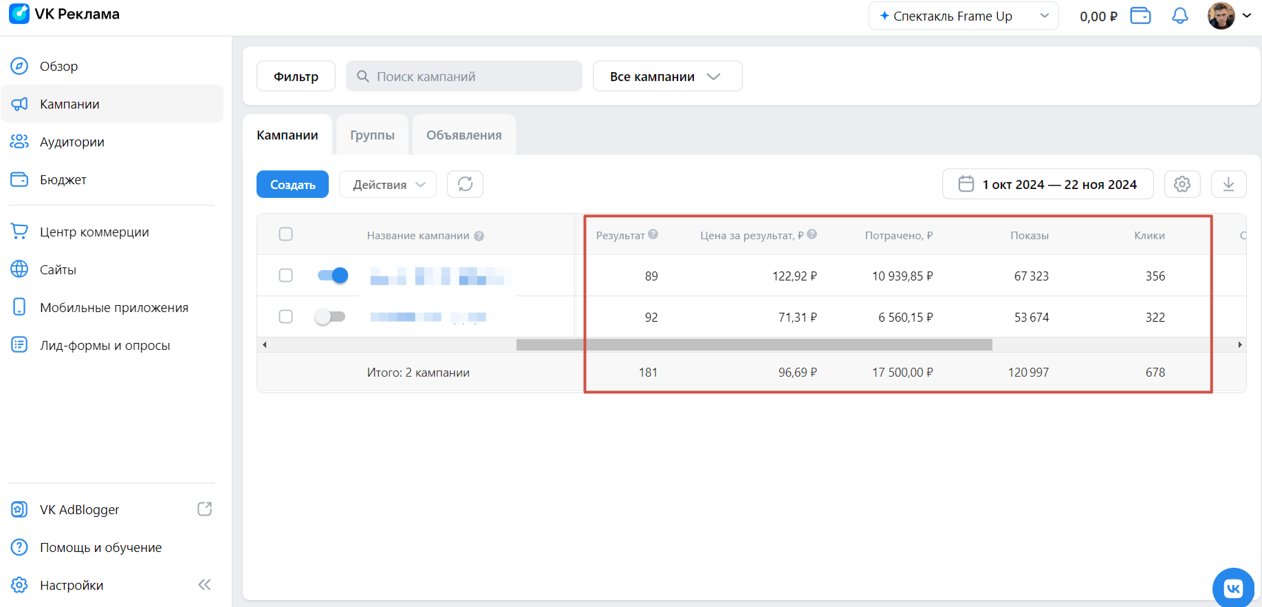 Рекламу вели в двух кабинетах ВК: старом и новом