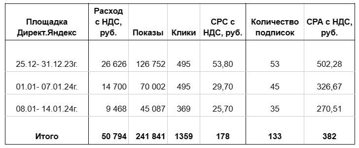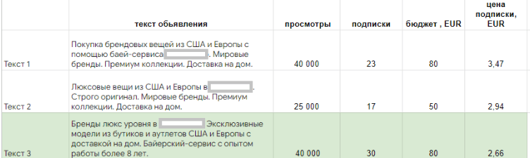 -Запустили тестовые рекламные кампании для определения самого эффективно текста