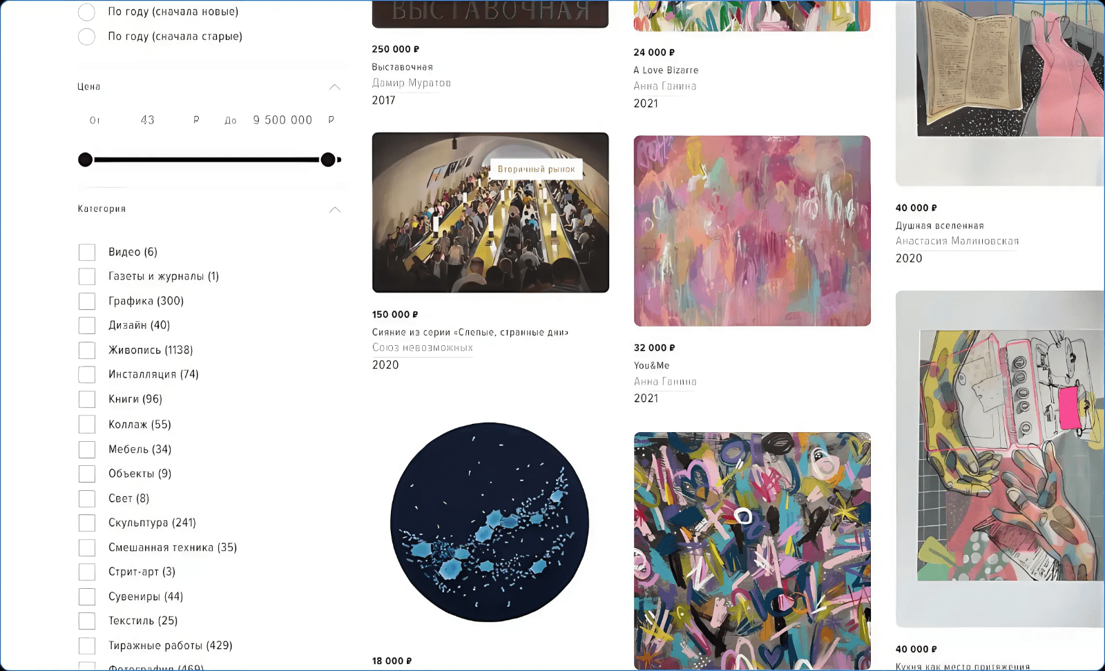Важная составная часть арт-портала — это подробный каталог с функцией фильтрации.
