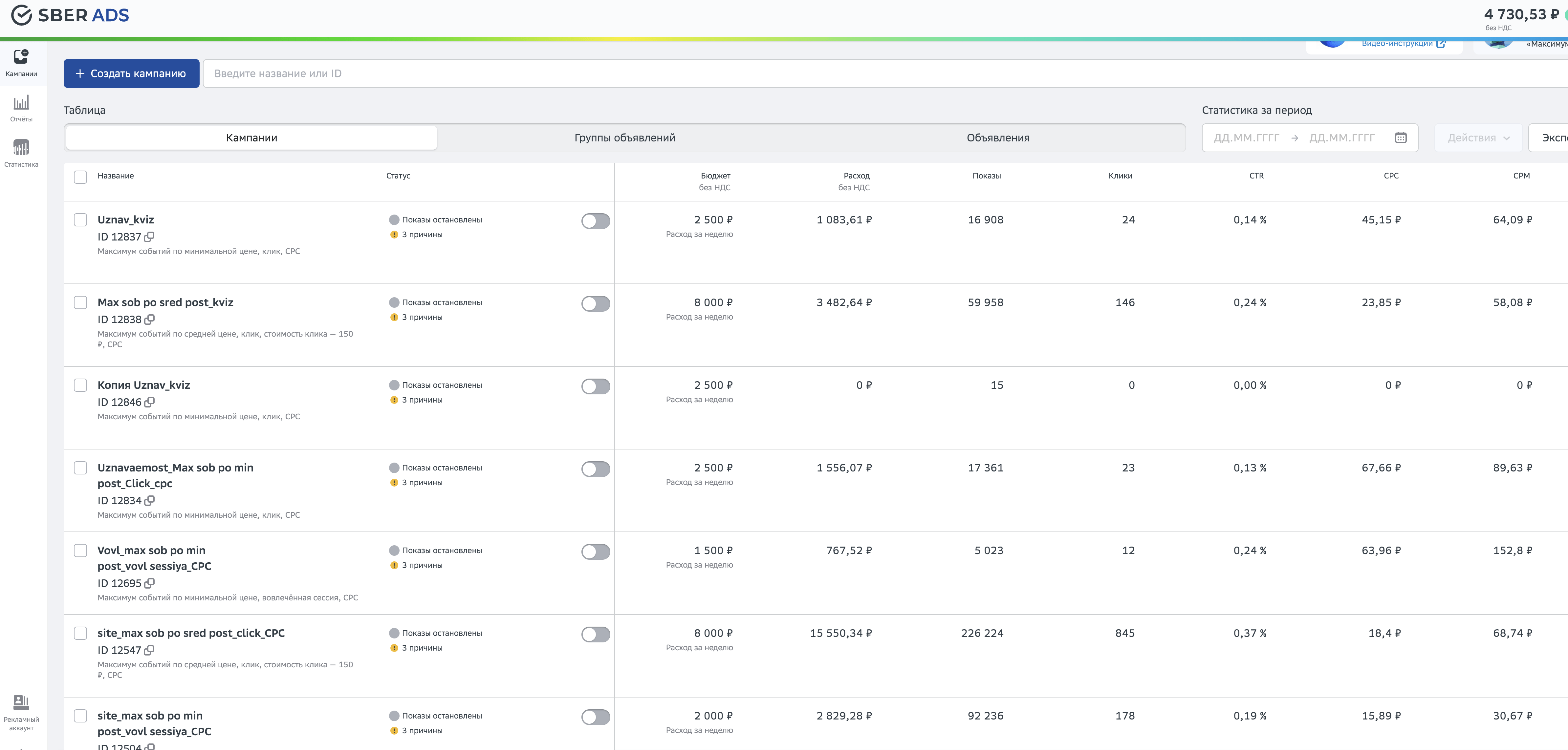 Решили протестировать новую площадку SberAds (сайты и приложения экосистемы Сбера) на стабильном проекте с уже понятной экономикой и конверсией.