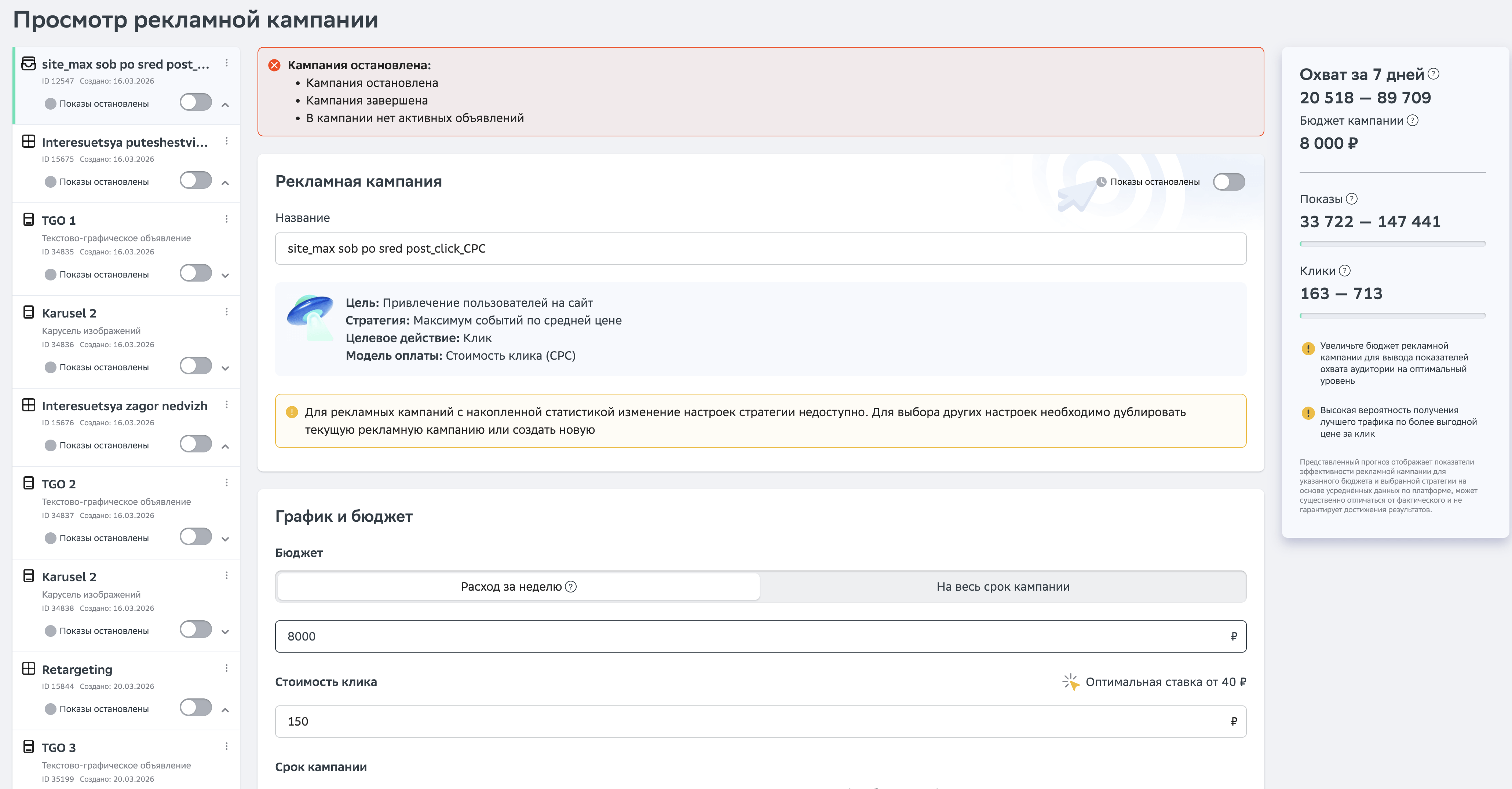 - Пробовали трафик вести на сайт, результат - показы есть, лидов нет, броней нет, только показы и клики.