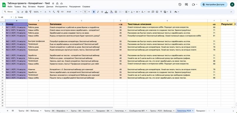 Все наши заказчики получают Гугл-таблицу, где ведется весь анализ по каждому направлению. И это не отписка в виде переноса цифр из рекламного кабинета, а конкретная расшифровка и показ всех процессов.