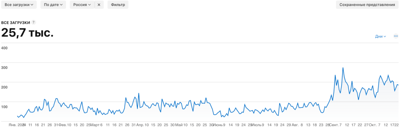 Это результат оптимизации и рост семантического ядра на iOS на проекте в октябре 2024 года