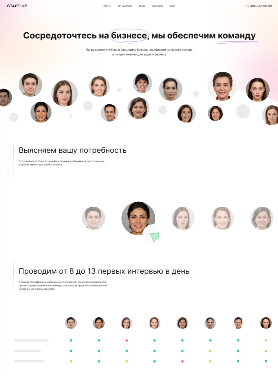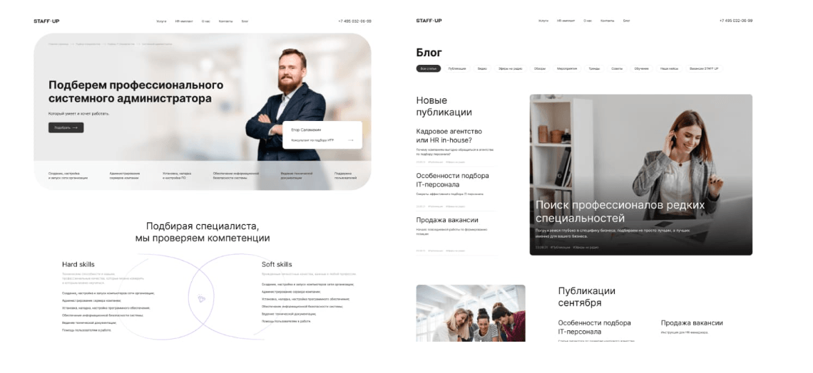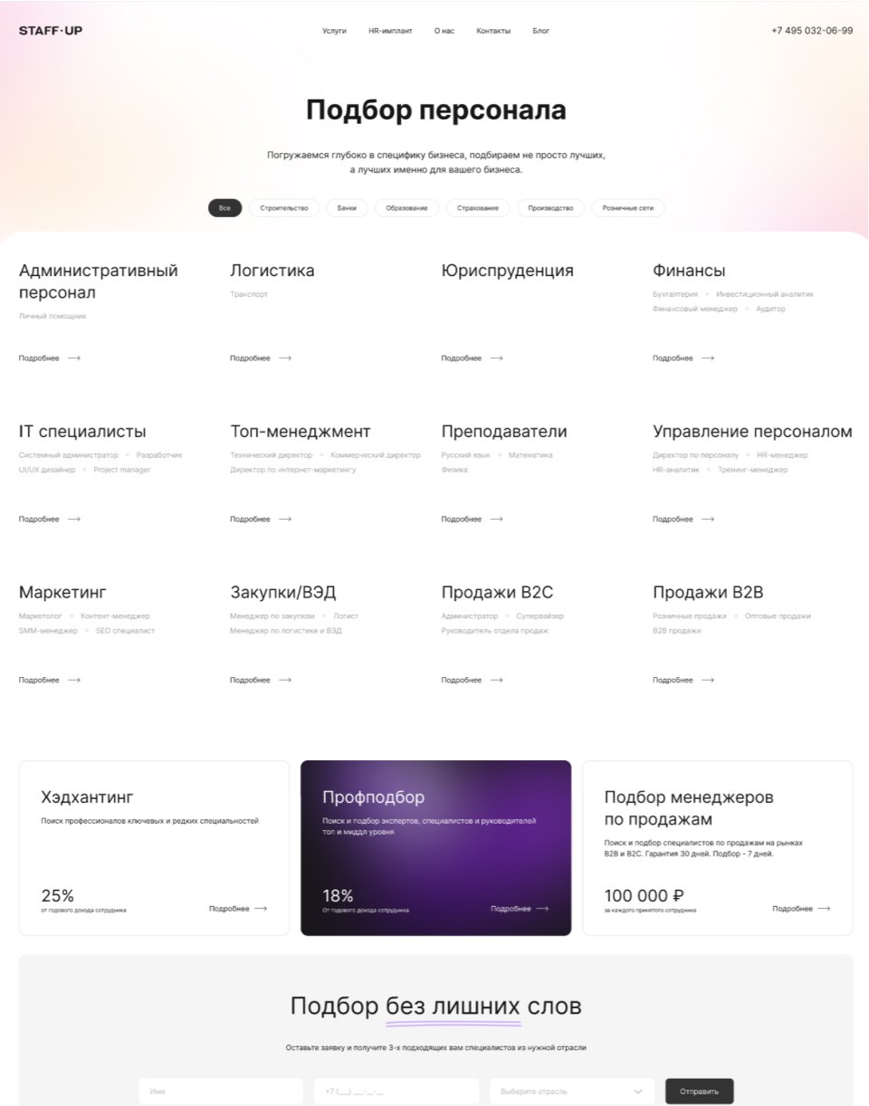 Мы проанализировали лидеров рынка кадровых услуг, в том числе на мировом уровне, и выделили лучшие практики, самые удачные паттерны дизайна и стиля. На их основе делали варианты дизайна.