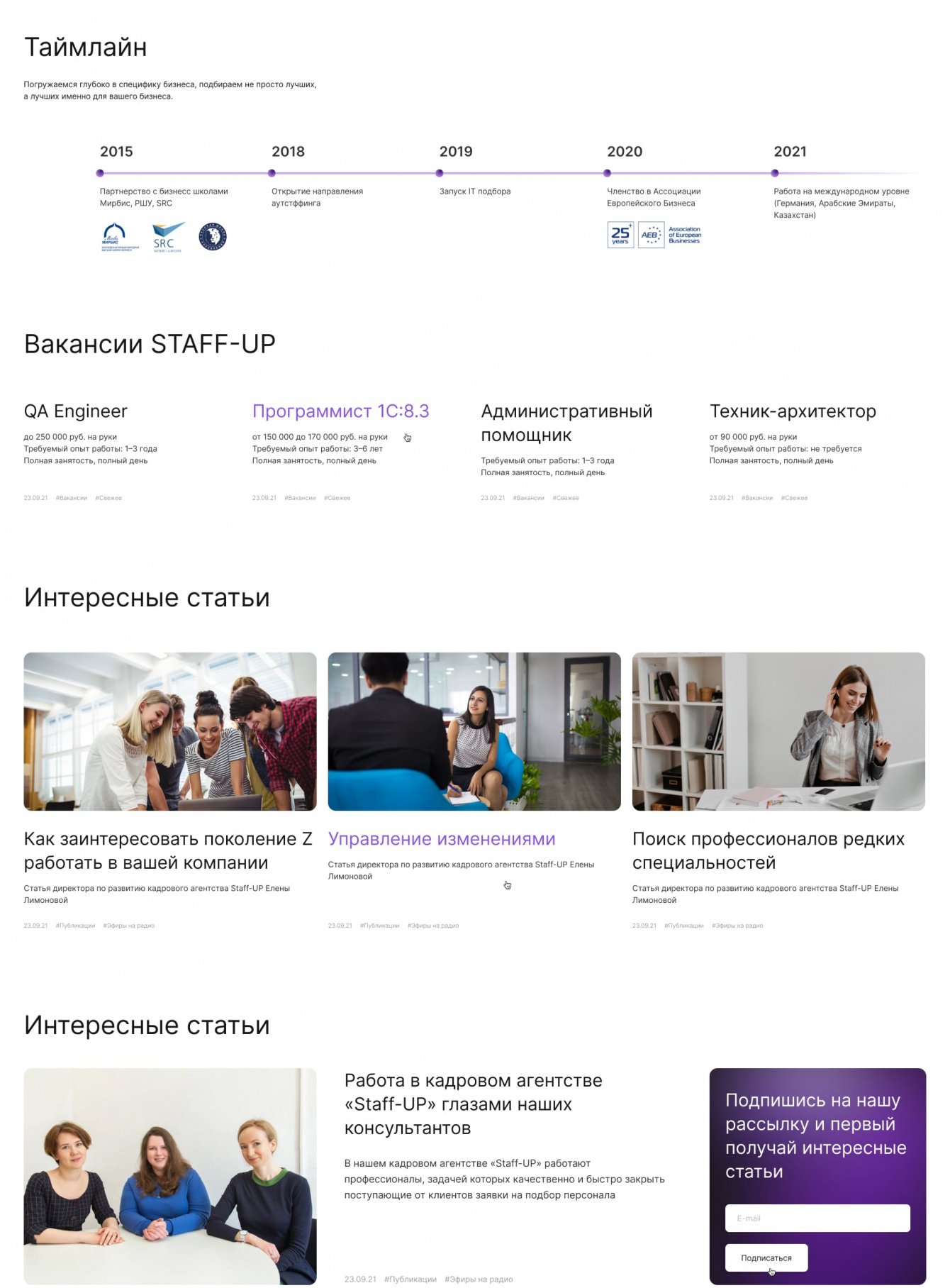 Создали множество шаблонов разделов, таких как блог, вакансии, страницы отраслей и множество других.