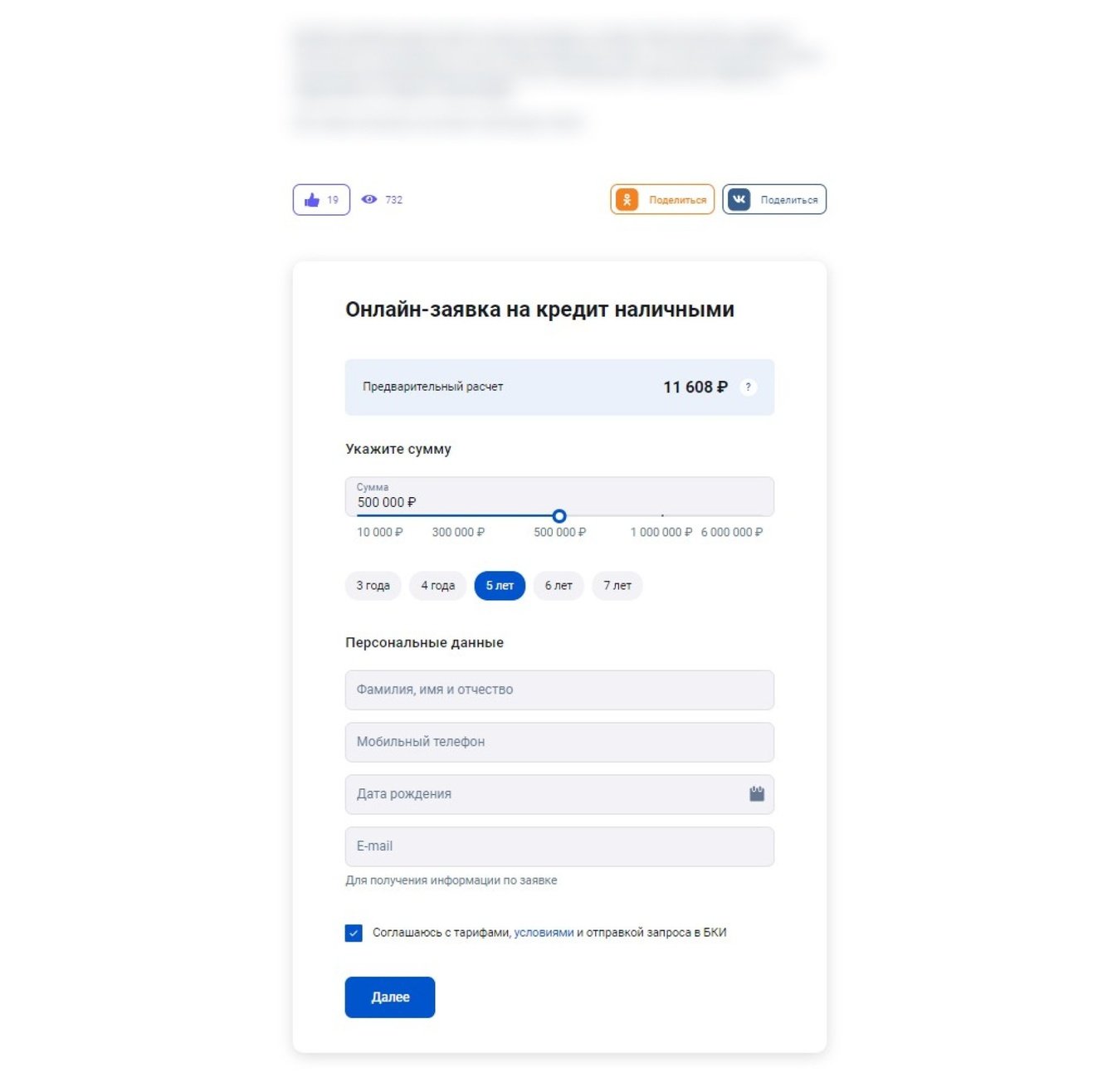 Чтобы конвертировать в заявку информационный трафик, который мы привели, команда банка протестировала и внедрила в контент CTA в виде виджетов и анкет.