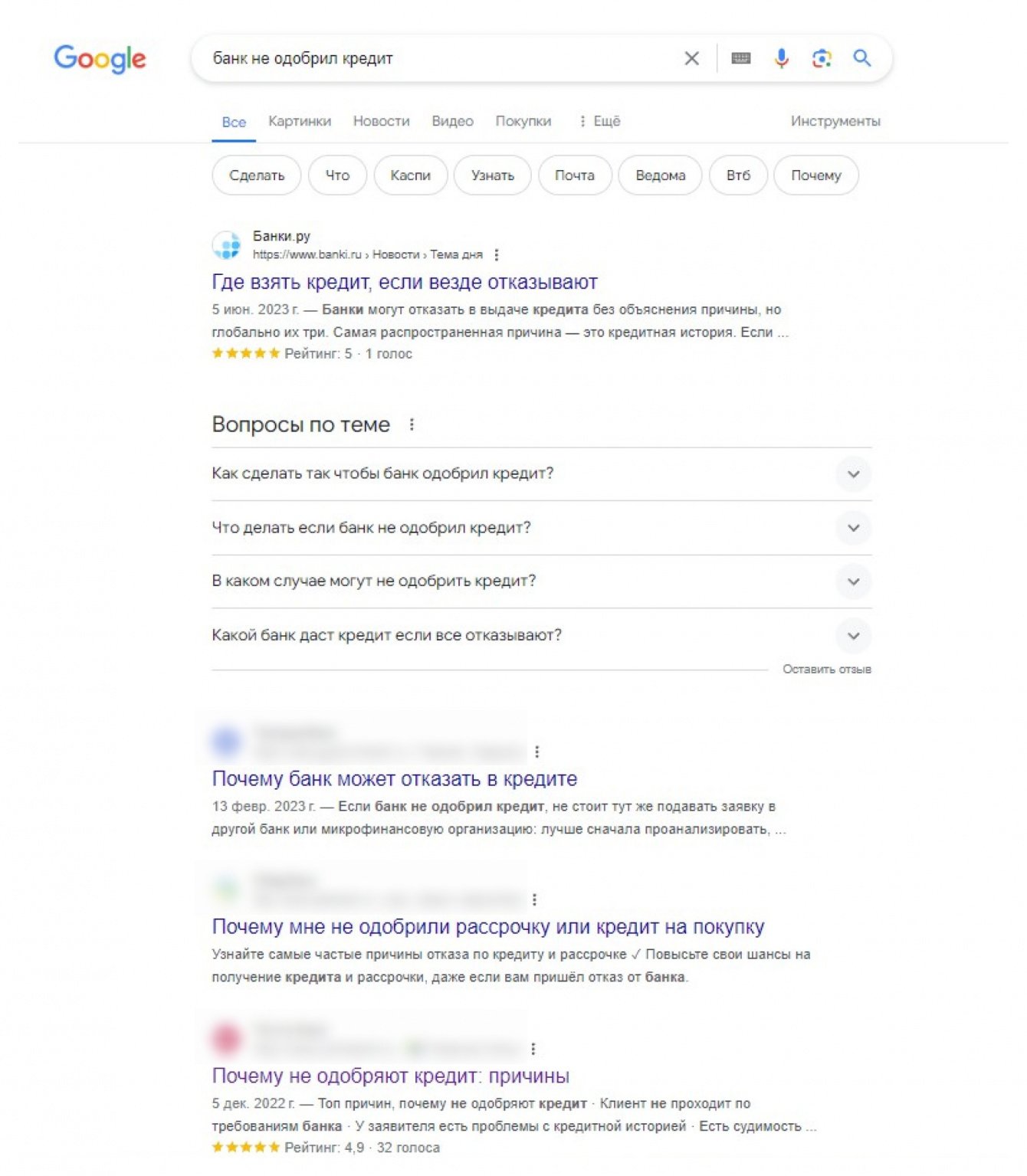 В Google по запросу «банк не одобрил кредит» статья клиента входит в топ выдачи