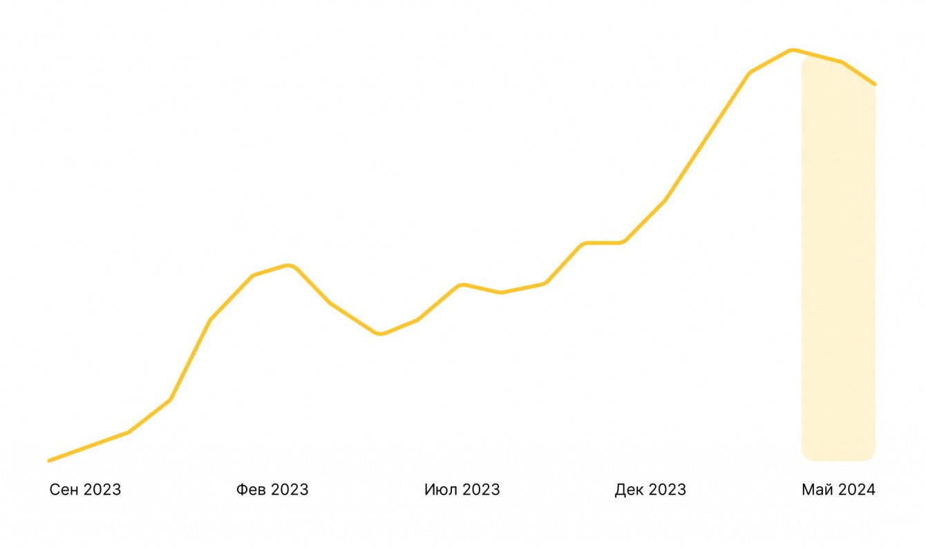 Мы подключились к задаче в сентябре 2022 года. Тогда посещаемость блога была примерно 5000. Пик пришёлся на март 2024-го — значение достигло почти 200 000. Спады при этом связаны с сезонным снижением спроса на кредиты