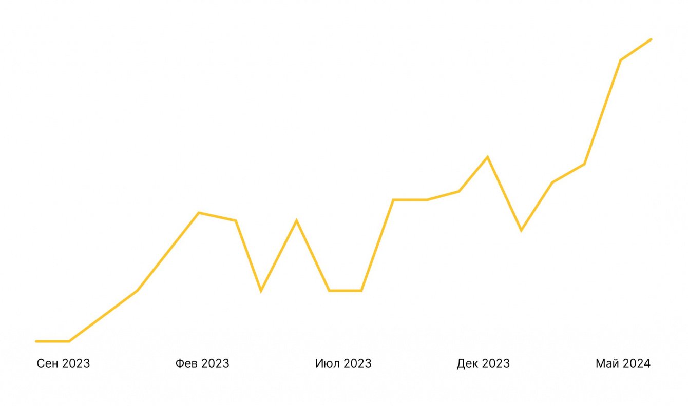 На скриншоте видна динамика роста заявок на продукт «кредит наличными». По подсчётам за период нашей работы над блогом с сентября 2022 года по апрель 2024 количество заявок выросло в 21 раз