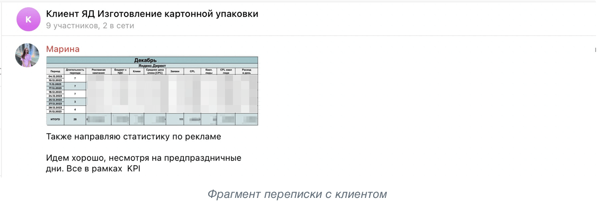 Также 1 раз в неделю мы предоставляем отчетность клиенту по основным показателям: потраченный бюджет, стоимость целевой заявки, смотрим динамику по продажам через аналитику.