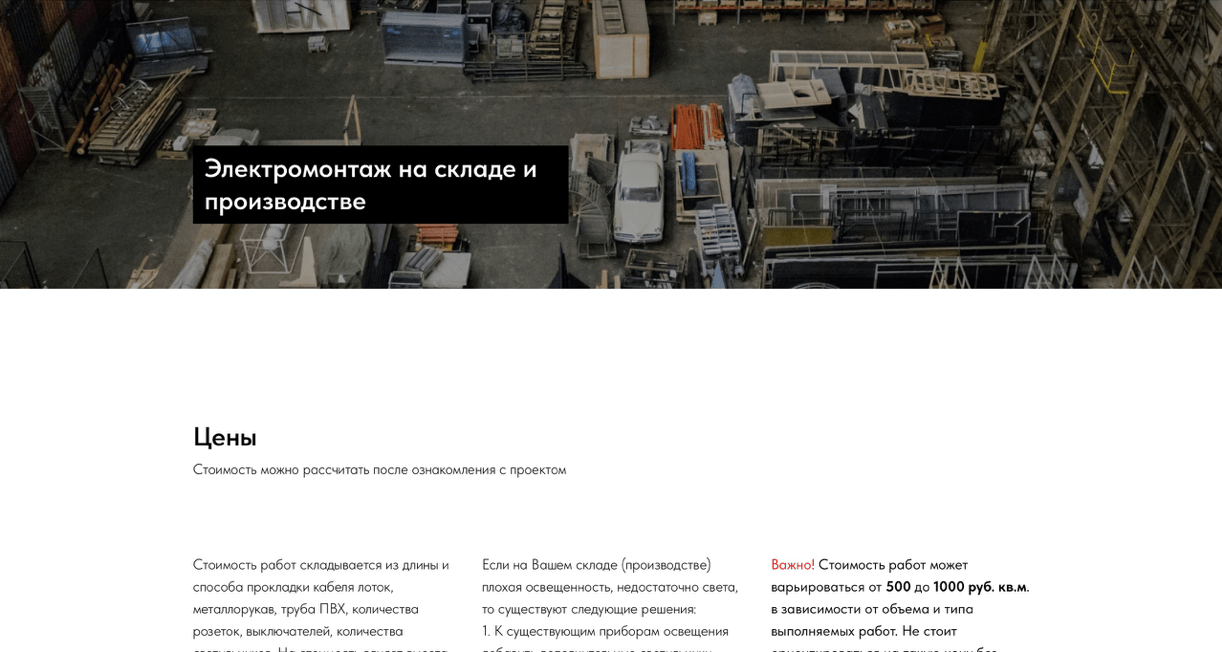 «...Разработали сайт и рекламу на электромонтажные работы. Ваша команда ежедневно держит в курсе ситуации, предоставляют отчетность по заявкам и окупаемости рекламы. Работаете очень четко и классно, все сделали в срок. По рекламе все хорошо, подписывали объекты на 2 млн, 6 млн и более... Работой довольны, запрос решили. Рекомендуем вас нашим партнерам ...»