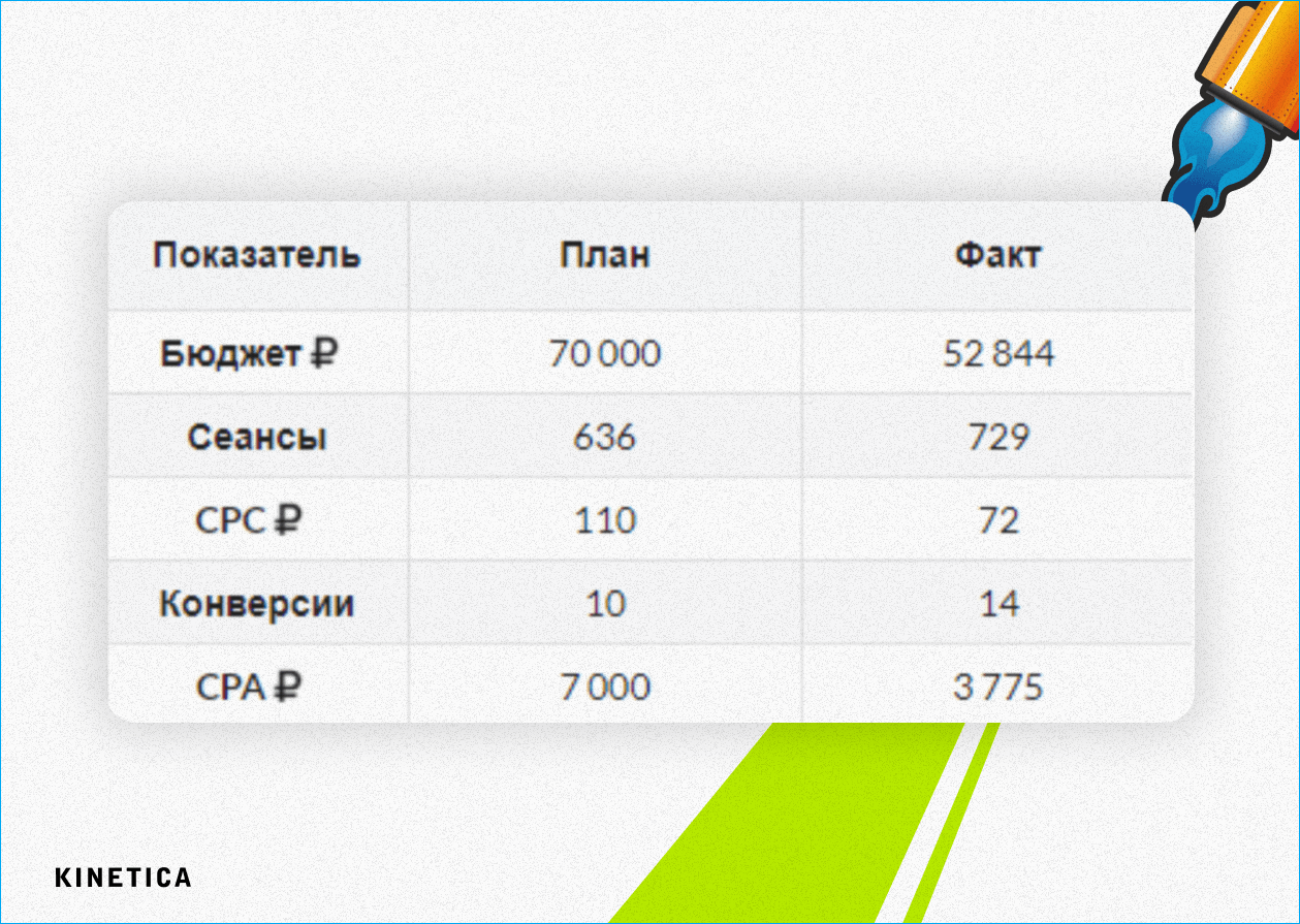 Кроме того, мы регулярно обновляли список минус-слов и минимизировали затраты на нецелевые переходы.